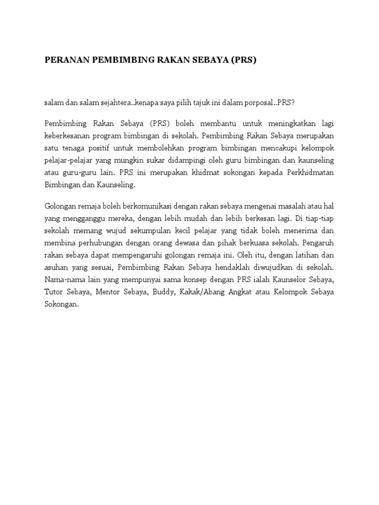 Program Pembimbing Rakan Sebaya Pdf